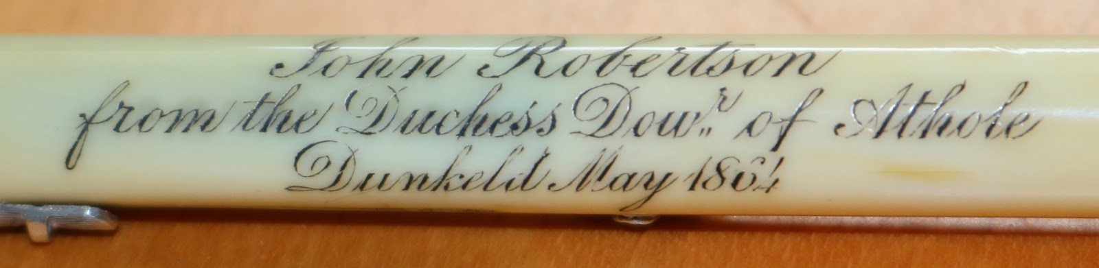 Are there other identical travellers still out there that are similarly inscribed to other members of the Duchess Dowager’s household? Who knows, but that is how a simple inscription, on a rare writing implement, grabbed my attention and began my quest to find out more.