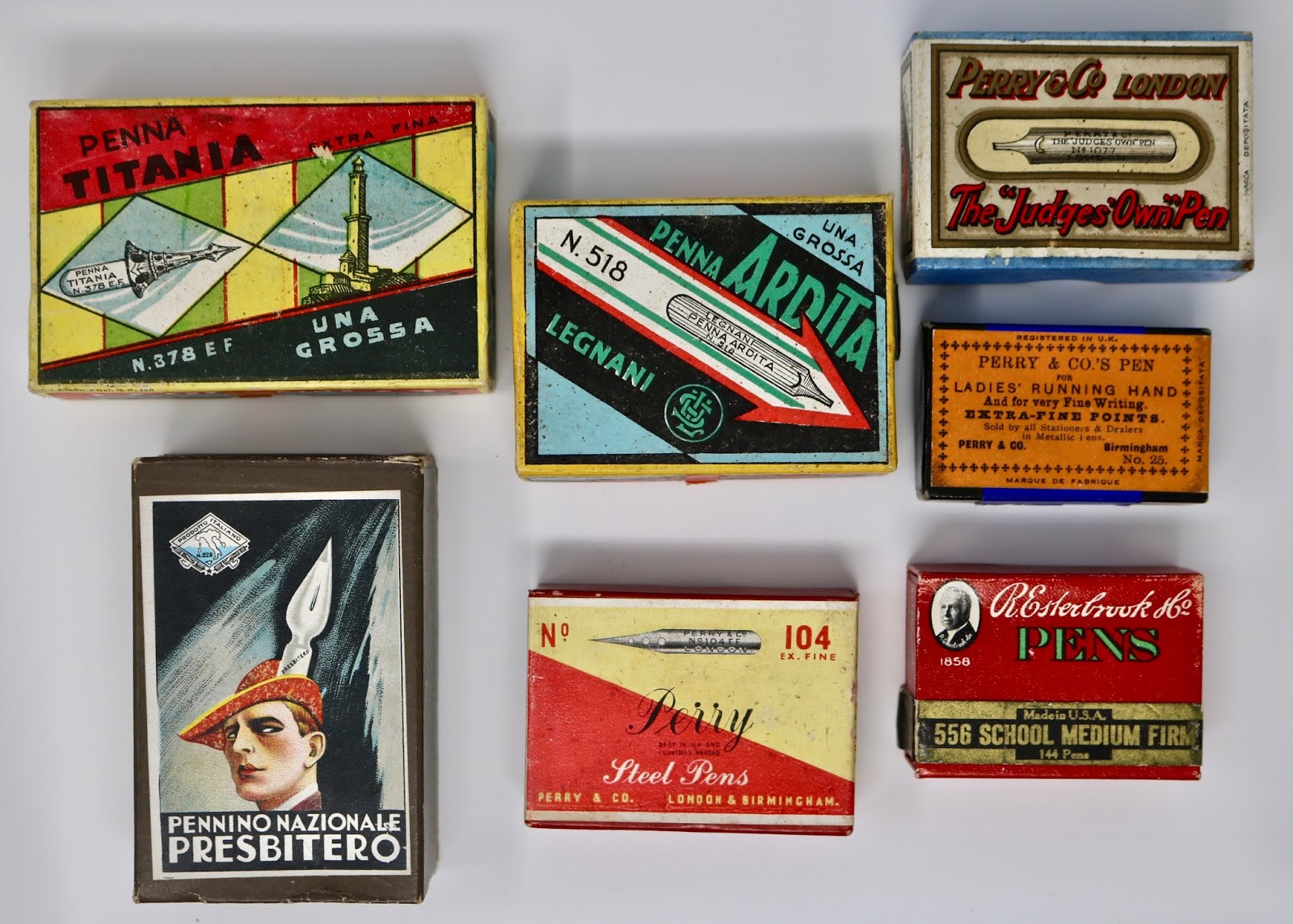 The only problem was that the seller had also just become aware that several of the boxes were fake. They very openly, and honestly, pointed this out to me after they’d opened a couple of the sealed boxes and discovered a range of less valuable mixed pen nibs inside that did not match the box labels. While the fakes resulted in several of the boxes now having no value, most of the lot was genuine. So, an acceptable price was agreed to and a package containing over 20 pen boxes from 3 different countries, over half a dozen different pen makers, and the efforts of one fraudster, arrived a couple of weeks later.