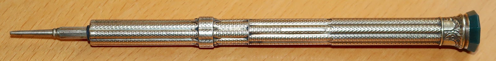An extending upper barrel, in addition to the pen/pencil combination, provided the owner with much greater flexibility and reduced the limitations imposed by the common fixed length full-sized desk pens and pencils of the day. One could now take a quality pencil/pen with them when they travelled as the overall length could be reduced by as much as 5 cm (2″) when closed, making the writing implement much easier to tuck away in a coat pocket or travel bag.