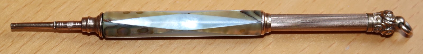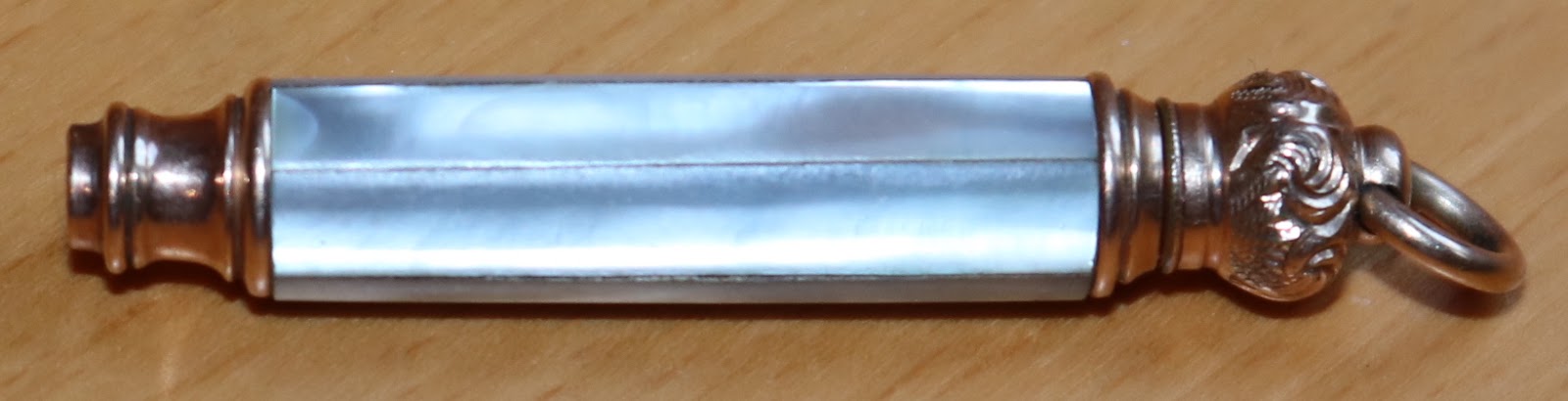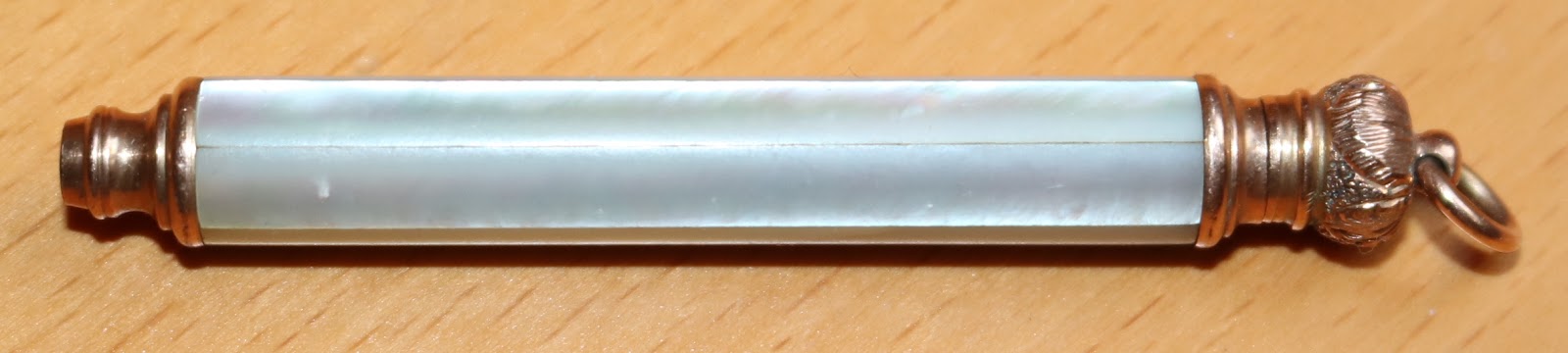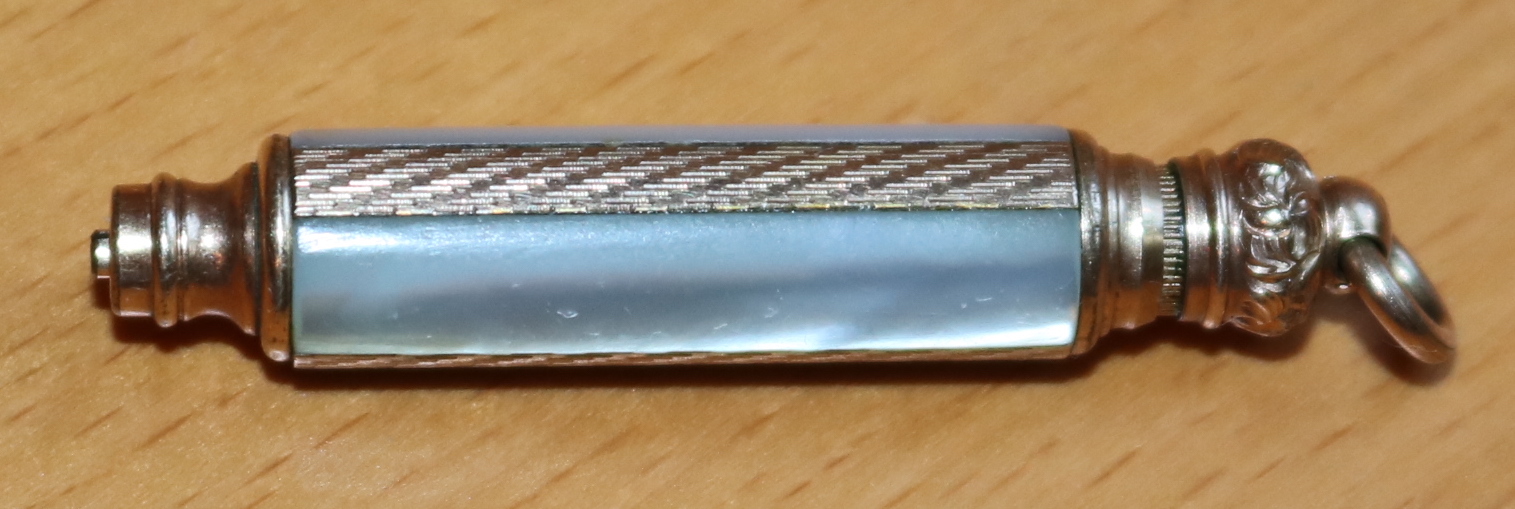 Unbranded – Mother-of-Pearl with Gold Bands Magic Pencil – The barrel on this one is comprised of alternating bands of mother-of-pearl and gold panels. It is just slightly smaller than the Aikin, Lambert pencil above. There is no maker’s name on the pencil but the quality is similar to those above.